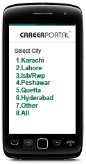 If the user chooses option 1 i.e. Jobs in Pakistan, option for city selection will be displayed.